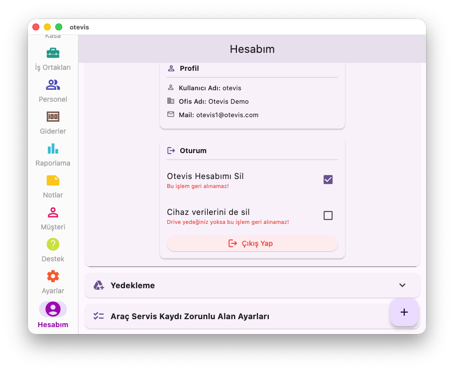 Otevis hesabınızı tamamen silmek için aşağıdaki akışı uygulayabilirsiniz.